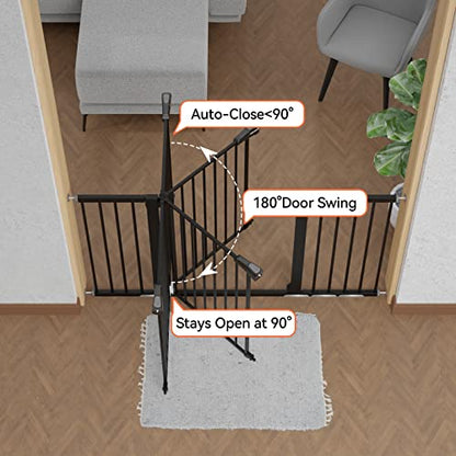 New BABELIO Extra Wide Baby/Dog Gate PressGuard P7 (Auto-Close, Pressure Mounted) | 29-55 in, Black