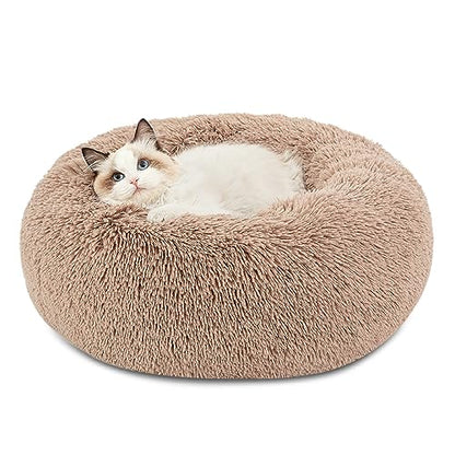 New Bedsure Calming Cat Bed (Indoor, Round Plush) | Camel & 20" (Small, up to 15 lb)