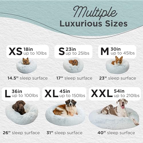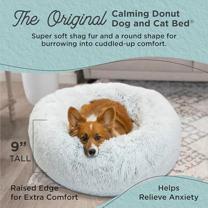 Provide your pet ultimate comfort and relaxation with the Best Friends by Sheri Original Calming Donut Dog and Cat Bed. Crafted from luxuriously soft Shag faux fur, this donut-shaped donut cuddler creates the perfect cozy space for pets who enjoy curling up, cuddling, and burrowing. Specifically designed to ease anxiety and stress, its plush texture mimics a mother's comforting fur coat, promoting deeper, rejuvenating sleep. The generous high-loft polyfill cushioning offers orthopedic support, relieving pressure points and gently supporting joints, muscles, and the neck. Ideal for deal for medium breeds such as Cocker Spaniel, Beagle, Boston Terrier, Shiba Inu, Corgie, French Bulldog, English Bulldog, this calming nest provides the warmth and security they naturally crave. Enhance your home with its cute, stylish, and functional design featuring a dirt-resistant and water-resistant bottom, helping to prevent accidental spills from reaching your floors. Maintaining this plush haven is simple and convenient—completely machine washable removable cover for easy care, ensuring a fresh and inviting sleep space for your furry friend at all times. Whether your pet enjoys daytime naps or deep nighttime sleep, this donut cuddler that helps with stress relief will quickly become their favorite cozy spot. Spoil your beloved companion with a calming, supportive sanctuary designed to improve their overall wellbeing, health, and happiness, making your home an even happier place. Ideal for puppies and senior canines, xs and small dogs (Yorkies, Dachshunds), medium dogs (Frenchies, Bulldogs, Beagles), large, and even XL or giant dogs (Great Danes, Saint Bernards), as well as indoor cats and kittens of all breeds, the Original Calming Donut Dog and Cat Bed comes in two faux fur styles – Lux and Shag – to provide comfort for every breed type. Pets with long fur will find comfort in the Lux design – shorter pile, luxuriously soft, and great for warmer seasons – while pets with short fur will appreciate the self-warming nature of the Shag long faux fur option that creates a cozy haven during the winter season and in cooler climates. Both styles feature a water and dirt-resistant bottom that helps prevent messes from reaching your floors. When accidents happen, or the bed needs a quick refresh, cleaning is a breeze – machine wash and follow the instructions on the label to ensure proper care. Small beds (18 in and 23 in) are entirely machine washable, while medium, large, and extra large beds (30 in, 36 in, 45 in, and 54 in) have a removable cover for machine washing. Create an elevated home furniture aesthetic with neutral ivory and cream colors, pastel pinks, blues, sage green, and purples, or even dark browns, muted beige, and more – Best Friends by Sheri provides the coziest deep dish cuddle cup beds, enclosed hooded huts, memory foam orthopedic beds, and numerous donut bed options to suit every pet's need.