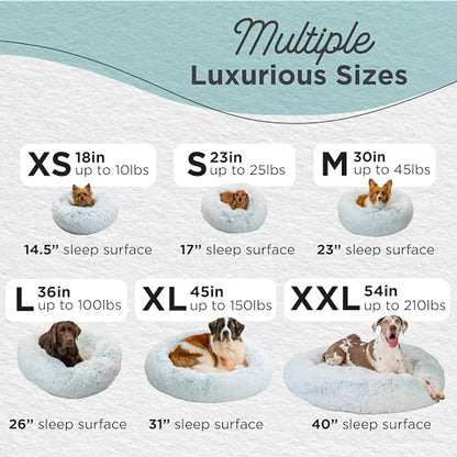 - Calming Dog Bed: 45-inch donut cuddler provides a cozy haven to help soothe anxiety and stress in extra large dogs up to 150 lbs; ideal for breeds such as Bernese Mountain Dog, Saint Bernard, Newfoundland, Bullmastiff, etc