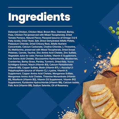Formulated for the health and well-being of adult dogs, BLUE Life Protection Formula Small Bite Dog Food, Chicken and Rice dry dog food is made with the finest natural ingredients enhanced with vitamins, minerals, and other nutrients. Featuring a unique shape for dogs who prefer a smaller kibble, it's a high-quality, balanced recipe you can both feel great about. Designed to help your dog thrive, this formula starts with real chicken and contains no chicken (or poultry) by-product meals, no corn, wheat, or soy, and no artificial flavors or preservatives. Like all BLUE dry foods, BLUE Life Protection Formula includes exclusive, antioxidant-rich LifeSource Bits to support a healthy immune system in your adult dog. Give your dog the balanced nutrition of BLUE Life Protection Formula today. BLUE Life Protection Formula is brought to you by Blue Buffalo, the leader in natural pet food. Blue Buffalo makes premium-quality pet foods featuring real meat, fruit, and vegetables. Love them like family. Feed them like family.