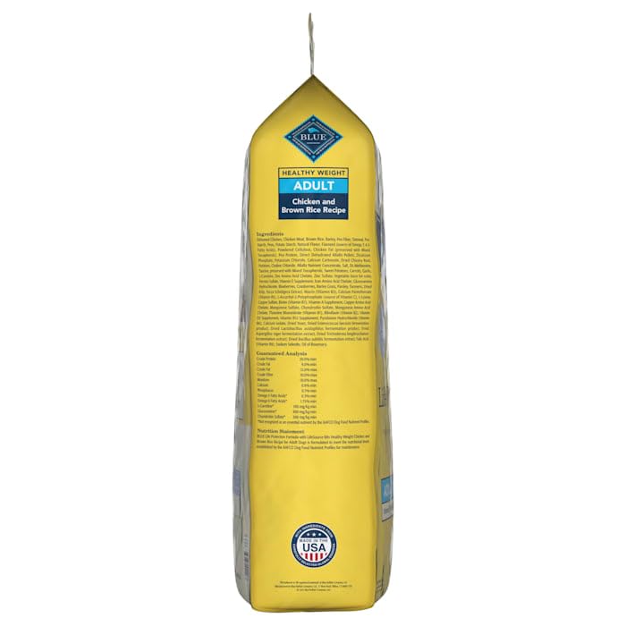 Formulated for the health and well-being of adult dogs, BLUE Life Protection Formula Chicken and Brown Rice Healthy Weight dry dog food is made with the finest natural ingredients enhanced with vitamins, minerals, and other nutrients. It’s a high-quality, balanced recipe you can both feel great about. Formulated specifically for maintaining a healthy weight, this diet has an ideal caloric balance and contains real chicken plus L-Carnitine to support lean muscle development. Like all BLUE dry foods, BLUE Life Protection Formula includes exclusive antioxidant-rich LifeSource Bits, which are “cold-formed” to retain their potency. Give your dog the balanced nutrition of BLUE Life Protection Formula today.