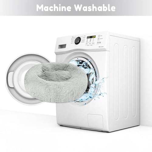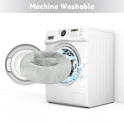 - 【COMFORTABLE SLEEP】This dog donut cuddler bed has a circular design, surrounded by bulges around the cat, which is very suitable for pets who like to curl up. The dog round bed provides a full sense of security for your pet.