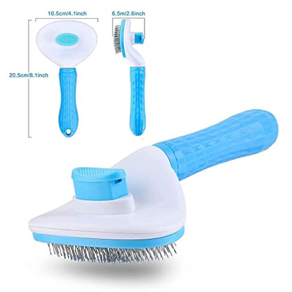 - ★SUPER EASY TO USE❤️: Self-Cleaning brushes with the push of a Button,clean up residue hair out of brush after one click. Cat & Dog Hair Brush gently removes loose hair, eliminates tangles, knots, dander, trapped dirt from pet or mat to keep your pet clean and healthy .Great brushes for cat dogs!