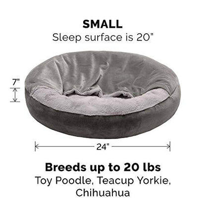New Furhaven Calming Donut Hooded Bed (Plush Velvet Waves) | Dark Gray & 24" (Small)