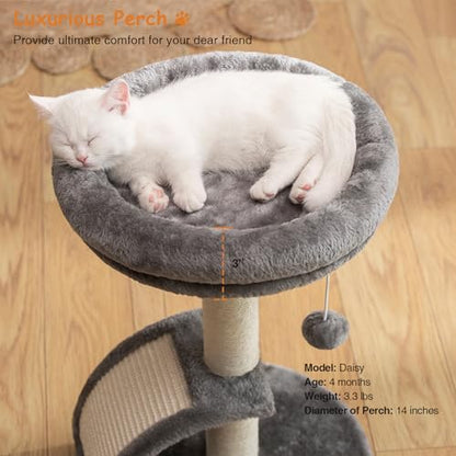 - 【Versatile Cat Tower】The cat tower with scratching post and bed is ideal for small to medium size cats up to 12 lbs., The vertical scratching post and floor scratch ramp provide more play space for cats. Goozii cat tower is also a ideal present as Christmas gifts for cat lovers.