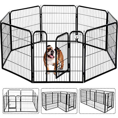 New HCY Large Dog Kennel Puppy Playpen (8 Panels Foldable) | 32 in H, Black