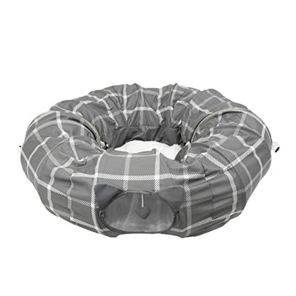 - NAP AND PLAY: The Kitty City Plaid Cat Tunnel Bed combines everything your feline friend could love in one convenient set. It’s a tunnel, a bed, and a spot to swat and play all in one! And better still, it’s easy to assemble.