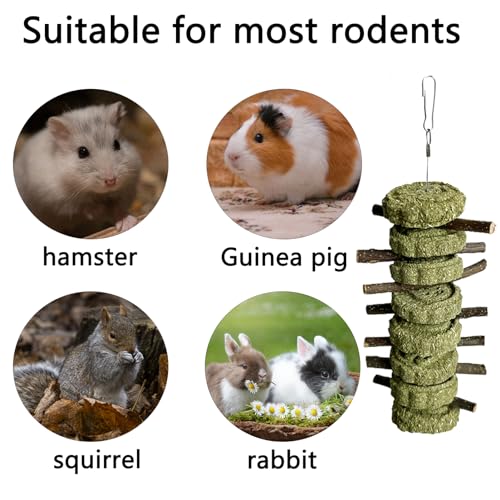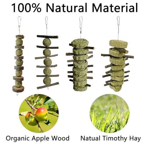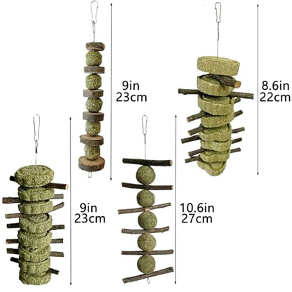 New LWINGFLYER Bunny Chew Toys Apple Wood Chews Cage Hanging Grass Cake Snack | 4 pack