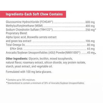 - Omega-3 Fatty Acids and Beta-Glucans: Each soft chew contains omega-3 fatty acids to help support skin and coat health and beta-glucans for immune support