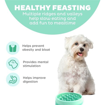 - Small slow feeder dog bowl – helps slow down eating up to 10X; this SLOW level feeder is designed for extra small to small dog breeds, puppies, or cats who need to slow their pace a little