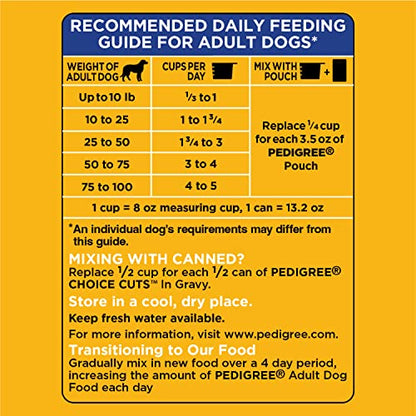 Every dog deserves the best… that’s why PEDIGREE Complete Nutrition Dry Dog Food delivers 100% complete and balanced nutrition for your adult dog. It has the antioxidants, vitamins, and minerals canines need to help maintain a healthy lifestyle, and in the delicious roasted chicken flavor they love. This tasty dry kibble helps support healthy digestion… Plus, it’s enriched with omega-6 fatty acids to help nourish your dog’s skin and promote a healthy coat. Irresistible in every way, this dry dog food provides whole grains and protein, and was made in the USA with the world’s finest ingredients. It has no artificial flavors, no high fructose corn syrup, and no added sugar. Dogs bring out the good in us. PEDIGREE brings out the good in them. Feed the good.