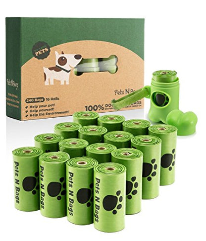 Doggie poop bag, pets n bags, 16 roll/240 count. 100% Oxo biodegradable, complies with ASTM D695 04. Rolls fit into standard leash dispensers/compact roll size.