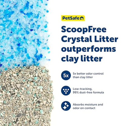 - Self-Cleaning Hoodless Litter Box: Experience the convenience of an automatic self-cleaning litter box with the PetSafe ScoopFree Crystal Pro; motion sensors and crystal litter offer easy cleanup