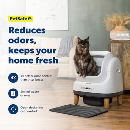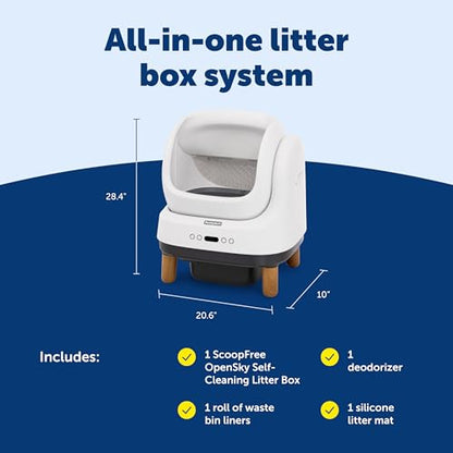 - Experience Hands-Free Cleaning: The PetSafe ScoopFree OpenSky self-cleaning litter box eliminates scooping by using a sealed waste drawer that traps odors and minimizes mess