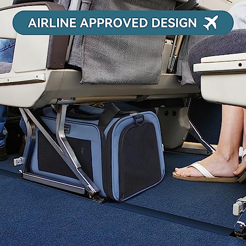 Petsfit 18 x 11 x 11 Airline Approved Pet Carrier, Upgraded Patented Car Buckle Soft Sided Cat Carrier, 4 Side Ventilated with Adjustable Shoulder Straps and Soft Cushion.Blue PETSFIT Pet Carrier, Dog Carrier Airline Approved, Collapsible Soft Sided TSA Approved Pet Carrier for Small and Medium Cats, Puppies Up to 12 Lbs, Cat Travel Carrier, Blue