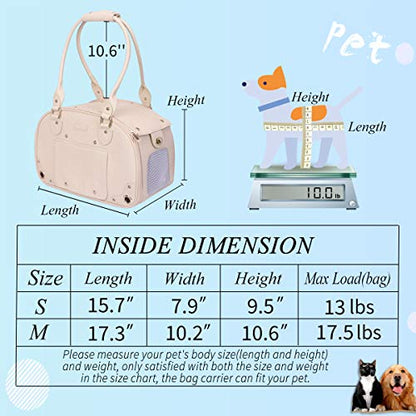New PetsHome Leather Pet Travel Bag Purse | Beige, Foldable Waterproof