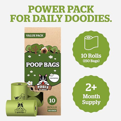 New Pogi’s Dog Poop Bags | Unscented, 10 Rolls (150 Count)