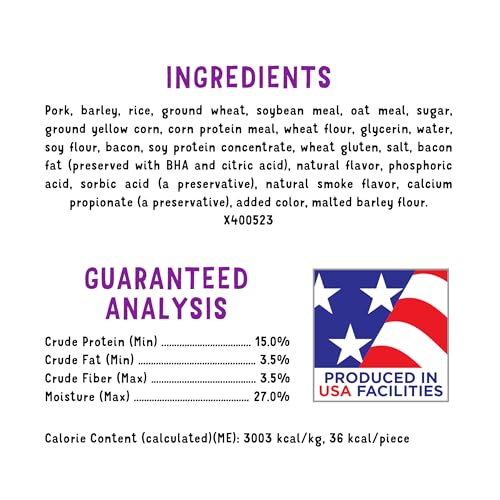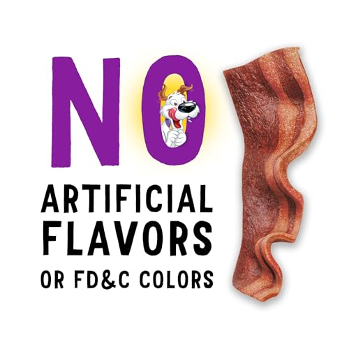 Drive your dog wild with anticipation over the strip that started it all with Purina Beggin' Strips Original With Bacon adult dog treats. Our irresistible Beggin' bacon flavor treats feature real meat as the number 1 ingredient and offer the tantalizing taste of real bacon that'll make all your pal's meat-crazed dreams come true. He's sure to dance for joy at the first sniff of sizzlin' bacony goodness, and you can feel good giving him mouthwatering dog treats made in USA only. Toss him a Beggin' Strip dog treat for a snack between meals, or tear these chewy strips into smaller pieces for use as dog training treats. With the look and taste of real bacon and with no artificial flavors or FDandC colors, these flavored strips for dogs get tails wagging and tongues lolling just like Hamlet, Beggin's bacon-loving mascot. Open up a dog treat pouch and listen for the sound of running paws. The rich aroma calls out to your dog with the promise of lip-smacking, yummy bacon flavor he just can't resist.