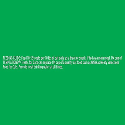 Cats can't resist the delectable taste of TEMPTATIONS, so give your cat these purrfect TEMPTATIONS Classic Cat Treats. They'll come running the moment you open the tub. Each of these low-calorie seafood flavor cat snacks has less than 2 calories and provides an irresistible combination of both crunchy and soft textures. These healthy cat treats also come in a cat-proof, stay-fresh tub, so your feline friend can enjoy their favorite snack when you open it, but never when they shouldn't! These TEMPTATIONS Classic Cat Treats are a perfect addition to your cat's normal feeding routine: Use them as a treat, a meal, or a cat food topper. They also are the perfect size treats for cat toys; try mixing up playtime by placing a few inside a treat dispensing toy and watch your cat chase and swat away. * Based on 2020 Nielsen sales data.
