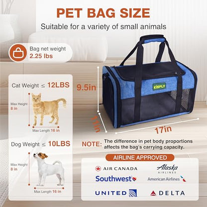 New TSA Approved In Cabin Soft Cat & Dog Carrier | Blue, 17″ × 11″ × 9.5″