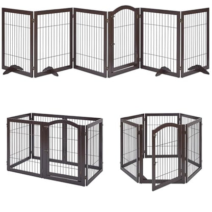 New unipaws Extra Wide Dog Gate and Pet Playpen | 144 in W × 31 in H, Espresso Wood