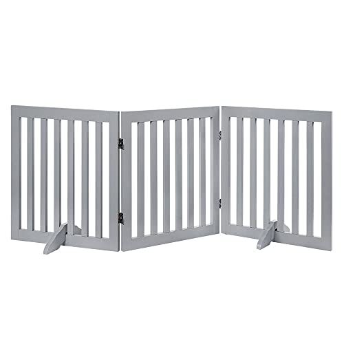 New unipaws Free Standing Pet Gate for Dog (Wooden, Foldable) | 24 in H, Gray