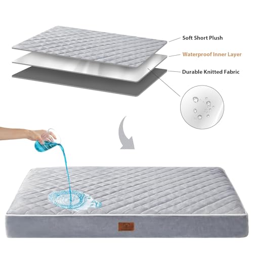 - 【Waterproof & Anti-Slip】The dog bed waterproof layer ensures that the dog's urine and saliva will not seep in and cause any unnecessary mess or unpleasant odor. The large dog bed also has a durable oxford cloth bottom with anti-slip dots to keep it in place when your dog is playing.