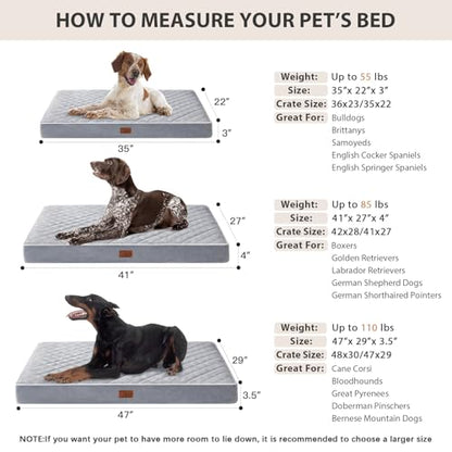 - 【Extra Large Dog Bed Size】47 x 29 x 3.5 inches, Suitable for dogs weighing less than 110 pounds, Including large and extra large breeds. The large dog bed is shipped in a vacuum-sealed box, and it's recommended to leave it in the air for approximately six hours after opening to allow it to fully expand and regain its shape.